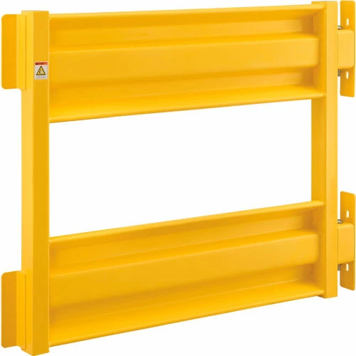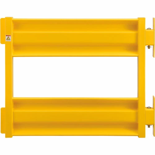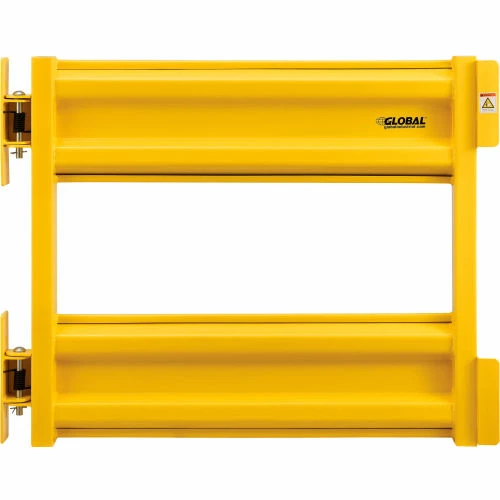 This rail safety gate provides accessible barrier security and protection for inventory, equipment, personnel, and more. The 2-rib steel construction ensures strength and impact resistance for warehouses, shipping facilities, and other high traffic areas. Includes a self-closing design that forces the gate shut as an added security feature. Features an OSHA approved safety yellow powder coat finish for high visibility and corrosion resistance. Mounts directly to Global’s 42″H Guard Rail Post (Model # 436732). Installed dimensions are 43-3/4″L x 39-3/4″H.